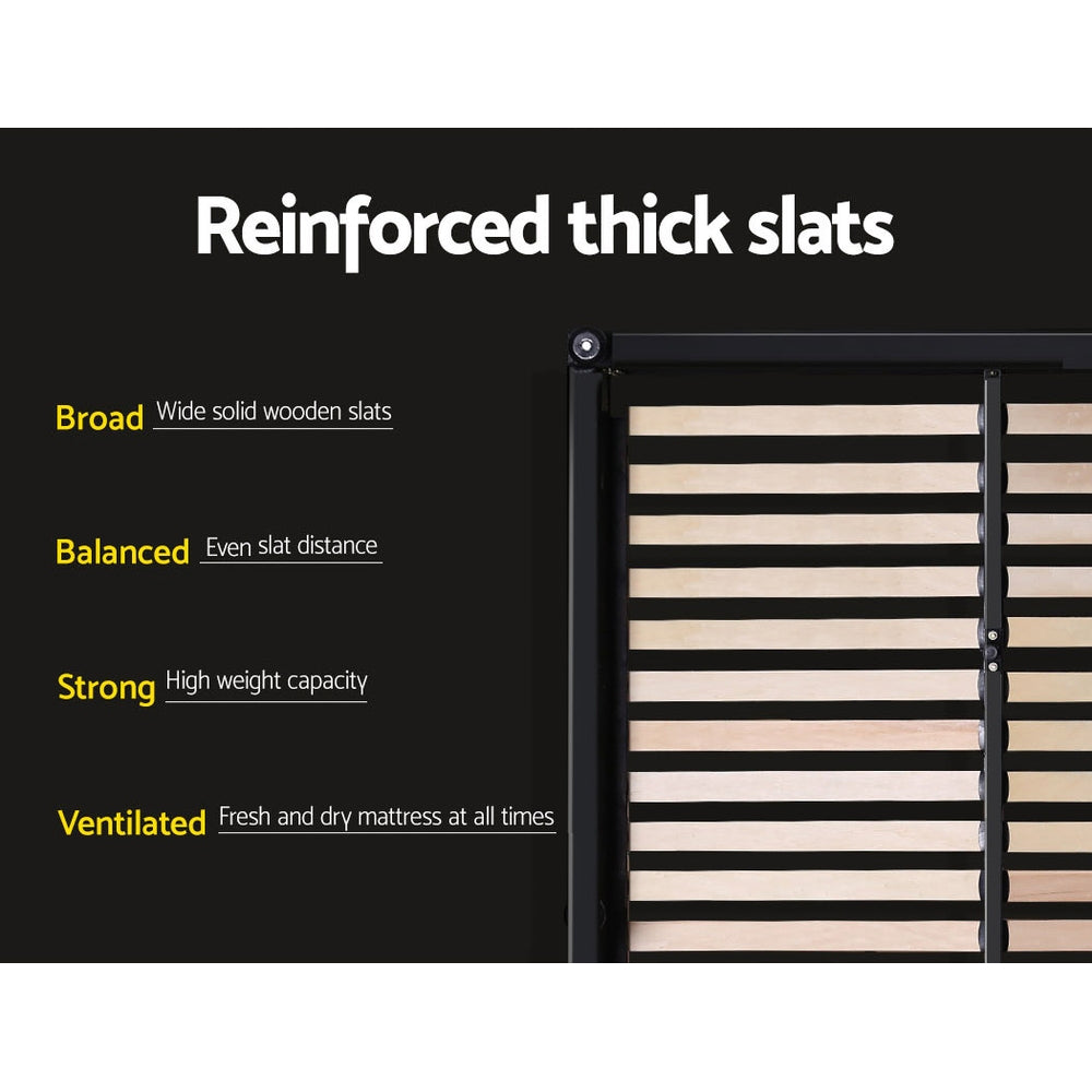 It is time to get the sleep you deserve with this Artiss Nino Bed Frame. Beautifully draped in faux-linen fabric, this is the luxurious bed frame you all deserve to rest in every night. The smooth headboard brings the prestige, whilst the strong steel frame with reinforced steel bars and a wooden arched slat base can put your mind at ease as you know you are sleeping on quality. One of the best qualities is the fact the bed frame has a gas lift which creates an instant storage area with ample space for you to hide away your items. This bed frame has the smarts as well as being great to look at!