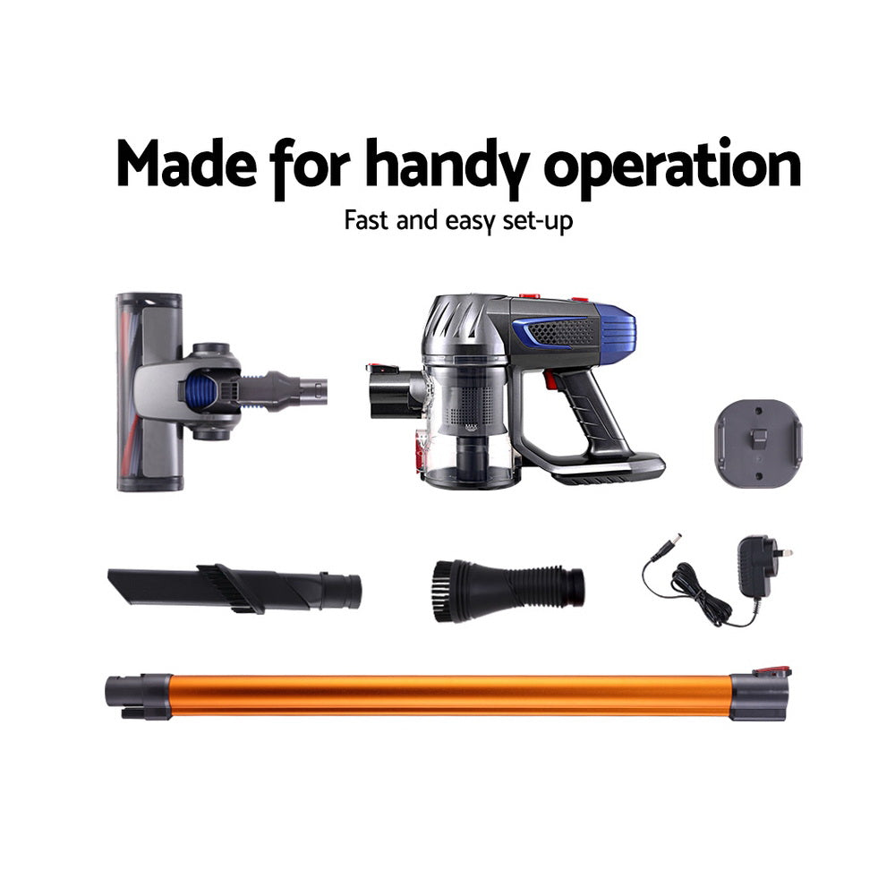 Our Devanti Handstick Vacuum Cleaner gives you the freedom to use it in any tight space or where spot cleaning needs to be done without lugging a big machine behind. Its powerful 150W 30000rpm motorised head has a steady suction power of up to 10000Pa and comes with two-speed suction for more vacuuming options. The 160 degree swivelling head can also be fitted with brush or crevice nozzles for different types of surface and zone cleaning that allows it to pick up dirt and debris easily. That makes the vacuum ideal for cleaning carpets, curtains, shelves, soft furnishings, vehicle interiors and delicate objects as well as vacuuming ceiling, corners, niches and gaps. The one-handed design is lightweight and bagless. All collected dirt and debris pass through a washable and reusable HEPA filter that eliminates up to 99.97% of dust and allergens. Not least, the vacuum cleaner can work its magic for up to 35 minutes of continuous running time on low speed (25 minutes on high speed) with the rechargeable 2000mAh lithium-ion battery.