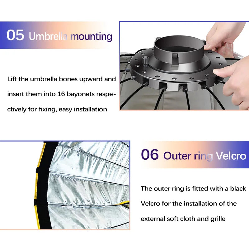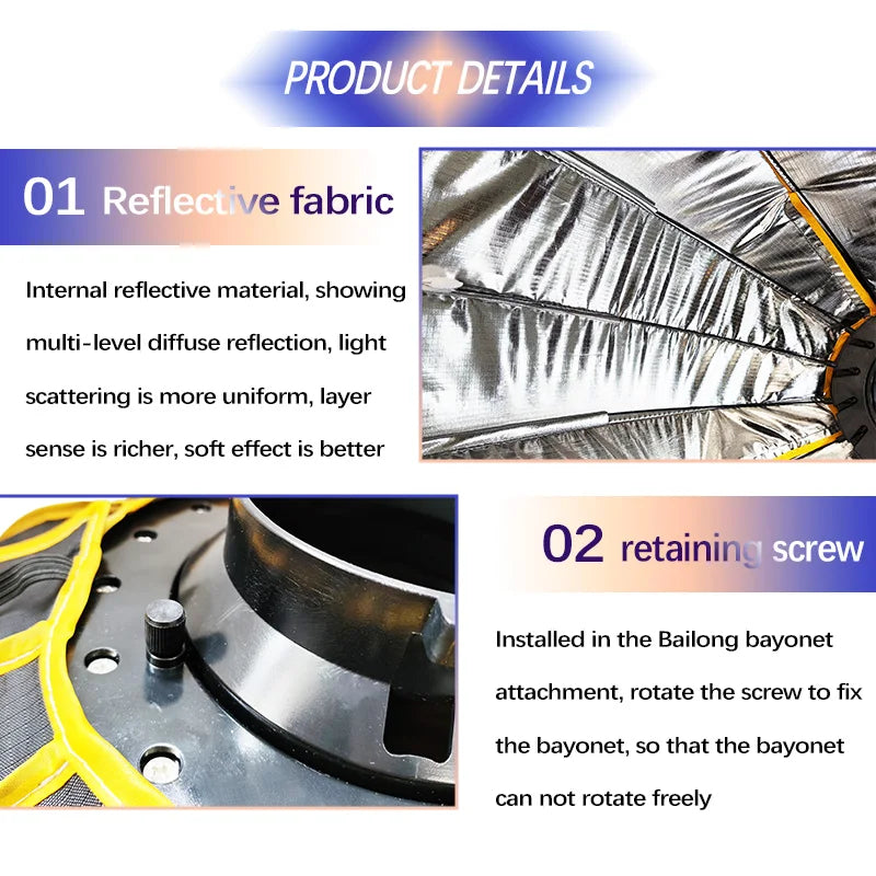 - New improved design: Compared with another softbox, we have improved the size and weight of the grid to make it more stable.