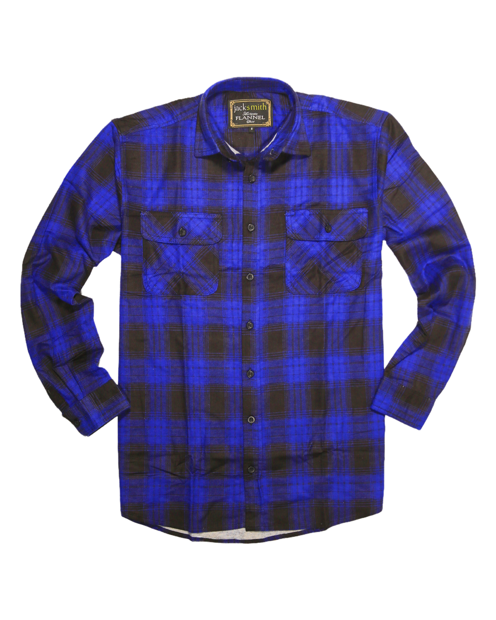 Mens Flannelette Long Sleeve Shirt 100% Cotton Check Authentic Flannel - Full Placket - Royal Blue - L