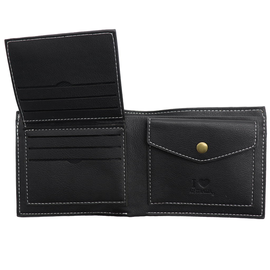 Mens Wallet Australian Kangaroo Leather Bifold Souvenir Gift Coin Card Holder, Black Kangaroo